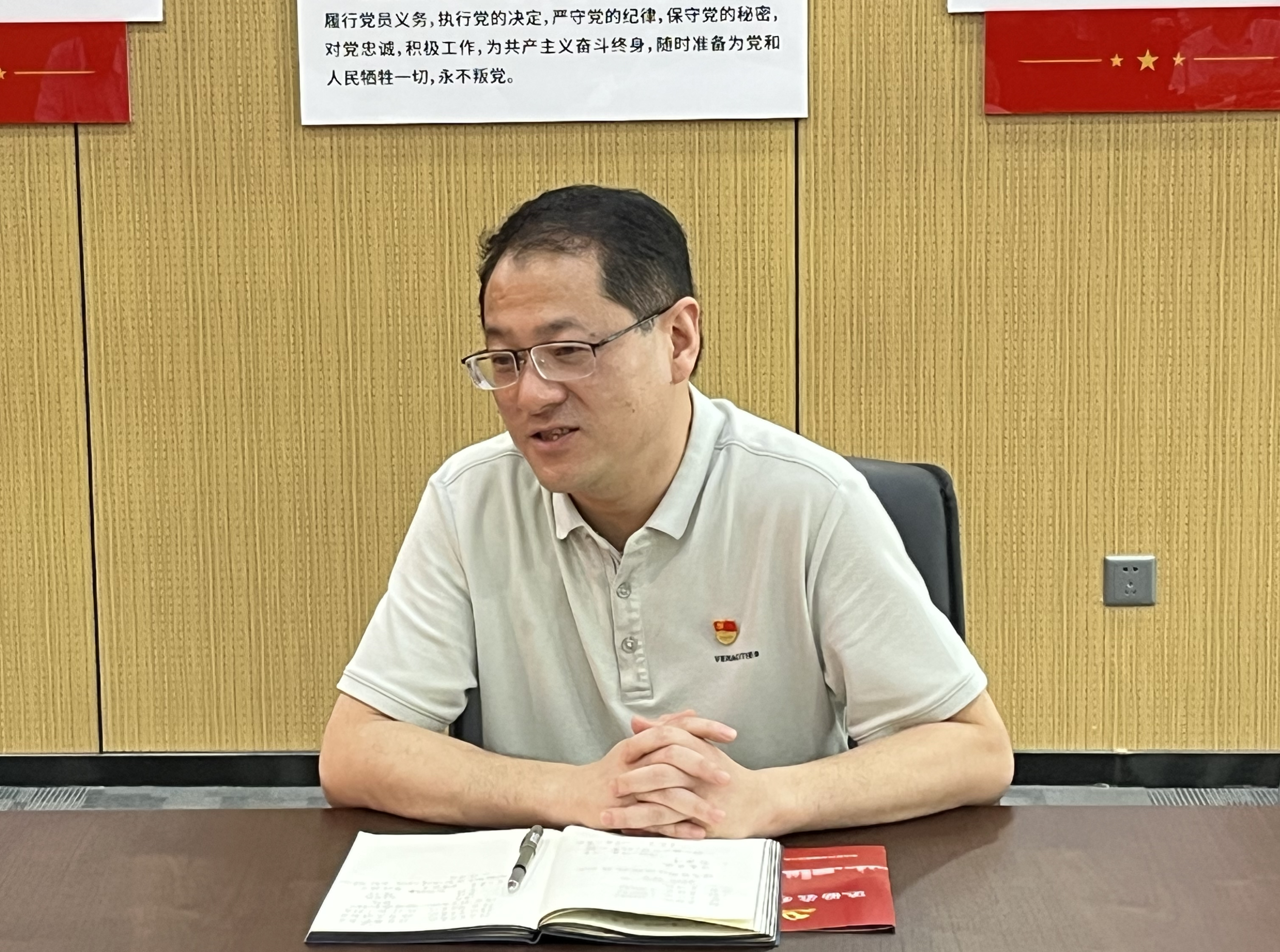首先,全體黨員佩戴黨徽、面向黨旗、舉起右拳,重溫入黨誓詞,鏗鏘有力、擲地有聲的宣誓聲表達了共產(chǎn)黨員的責任與擔當。隨后,黨組織為黨員們發(fā)放“政治生日”賀卡,送上溫暖衷心的祝福,激勵黨員干部不忘初心、牢記使命。老黨員代表王洋、預備黨員劉明偉、發(fā)展對象李洋圍繞入黨初心開展座談交流,回顧個人入黨心路歷程,并就如何發(fā)揮黨員先鋒模范作用談心得、講體會、作承諾。