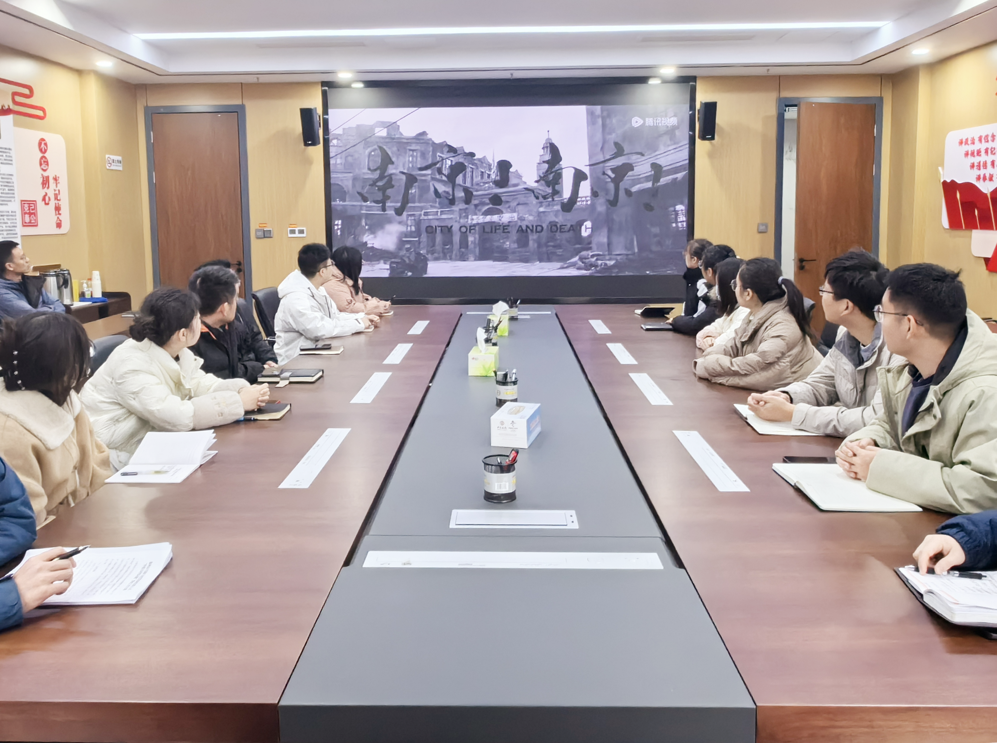 上午10時整,全體團員默立一分鐘,向南京大屠殺死難者致哀。默哀畢,市擔保集團團支部聯(lián)合市礦投集團團支部組織全體團員青年觀看歷史題材電影《南京!南京!》和《拉貝日記》,這兩部影片講述了86年前的今天,時為國民政府首都的南京城淪陷,但仍有許多官兵、愛國人士以及國際友人在民族存亡之際敢于留守,積極營救中國難民,與日軍展開激烈戰(zhàn)斗的故事。一幕幕歷史畫面,一樁樁血淚慘案,一個個死難同胞,無不觸動著全體團員青年的內(nèi)心,大家低頭沉思戰(zhàn)爭給中國人民帶來的苦痛經(jīng)歷,深切緬懷同胞先烈。