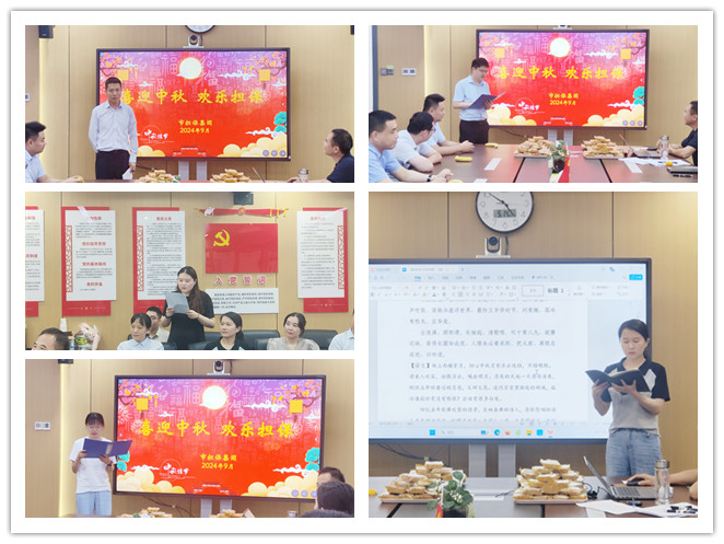 誦詩文談感悟。詩詞歌賦是中華傳統(tǒng)文化一朵燦爛的奇葩?;顒?dòng)中員工們深情朗誦了辛棄疾的《滿江紅·中秋寄遠(yuǎn)》、蘇軾的《念奴嬌·中秋》、徐有貞的《 中秋月·中秋月 》等優(yōu)美的古詩詞,同時(shí),還對(duì)這些詩詞創(chuàng)作背景、關(guān)鍵詞句、環(huán)境內(nèi)容進(jìn)行詮釋、賞析和點(diǎn)評(píng),進(jìn)一步加深了人們對(duì)詩詞的理解和感悟。