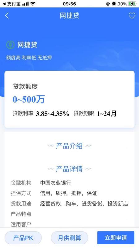 6.選定產(chǎn)品后,申請人輸入貸款額度、期限,選擇貸款用途、擔保方式,閱讀并同意《綜合查詢授權書》,即可提交申請;