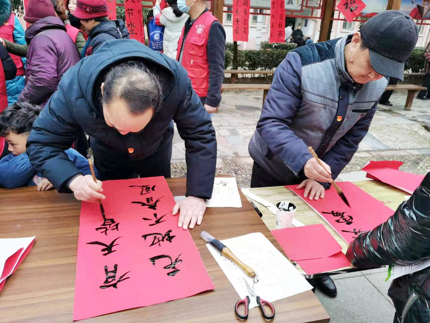 志愿者現(xiàn)場為居民寫春聯(lián)