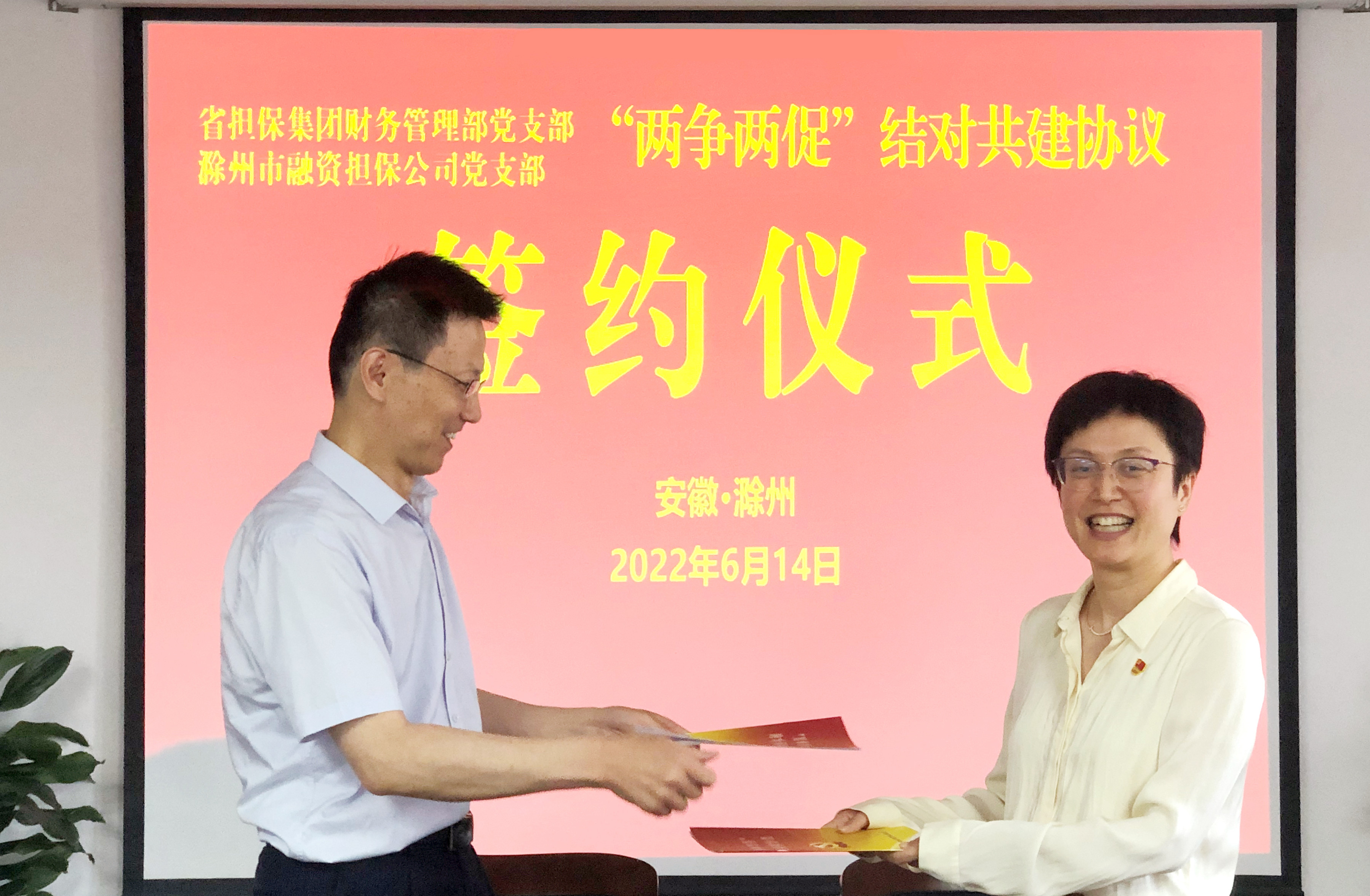 活動中,雙方簽署了“兩爭兩促”結(jié)對共建協(xié)議,開展了“傳承紅色基因 凝聚紅色力量”主題黨日活動,省擔保集團還向我單位贈送了黨建書籍。