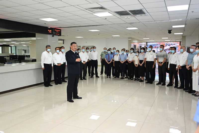 7月12日至15日,中共中央總書記、國家主席、中央軍委主席習近平在新疆考察。這是12日下午,習近平在烏魯木齊國際陸港區(qū),同工作人員及現(xiàn)場辦事人員親切交流。新華社記者 謝環(huán)馳 攝